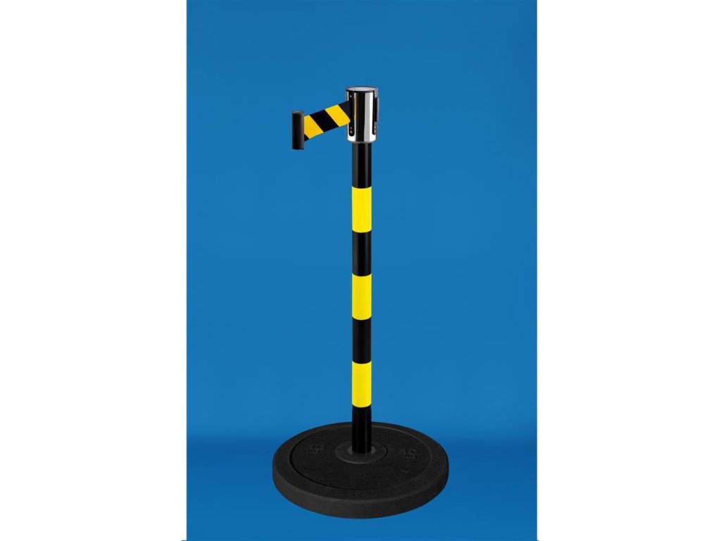50MRBY270BY, 50MRBY450BY Zahrazovací průmyslový sloupek žlutý s pruhy a pásem 3 m a 5 m, žlutý s gumovou základnou